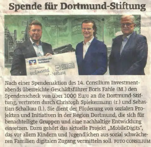 „MobileDigits“ – Menschen aus allen gesellschaftlichen Schichten eine Teilnahme an der digitalen Zukunft zu ermöglichen. Dies ist das Ziel des aktuellen Projekts der Dortmund-Stiftung. Dortmund, den 11.12.2024. Nach einer erfolgreichen Spendenaktion des 14. Consilium...